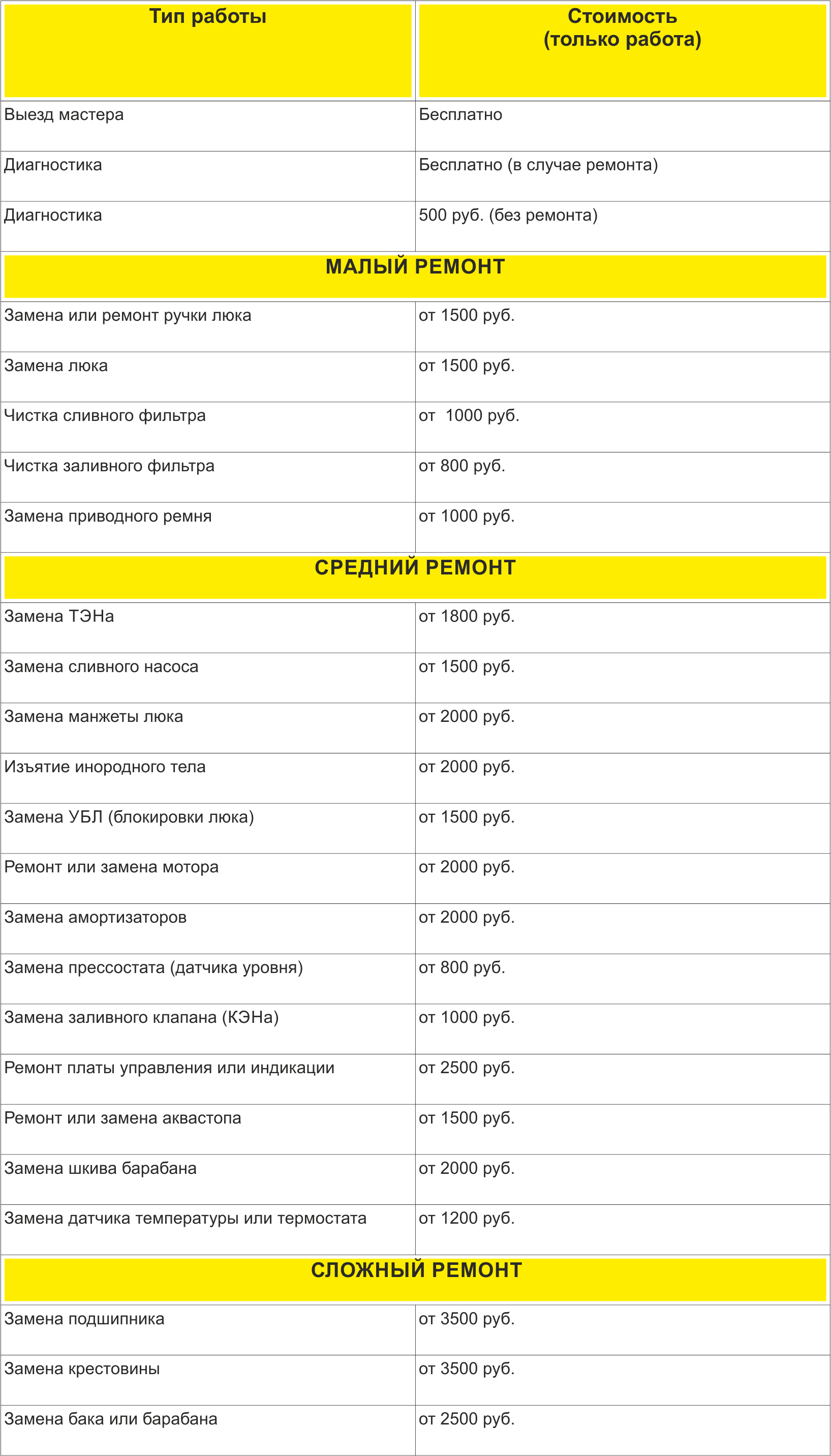 Замена бака или барабана;от 2500 руб.;1-3 часа